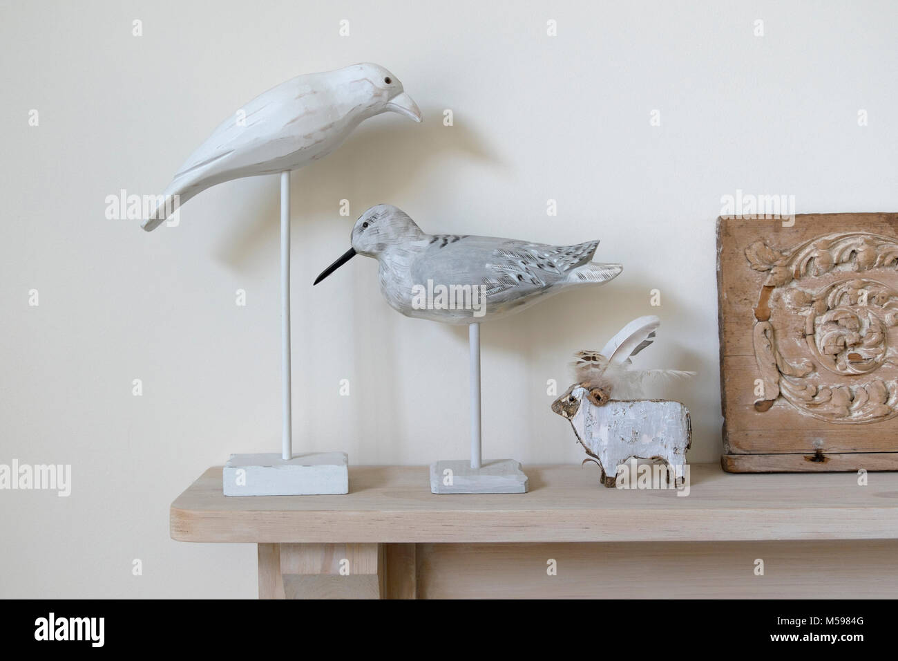 Wooden Bird And Sheep Ornament On A Wooden Mantelpiece Uk