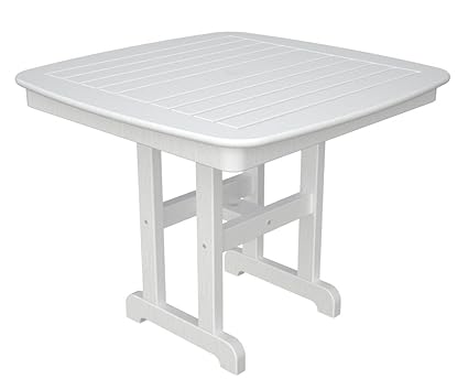 Polywood Outdoor Furniture Nautical 37 Inch Dining Table White Recycled Plastic Materials