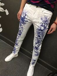 Top Quality Original Design Men S Printing Jeans Punk Rock Ds Dj Personality Painted Pattern Printed Jeans Slim Motorcycle Jeans