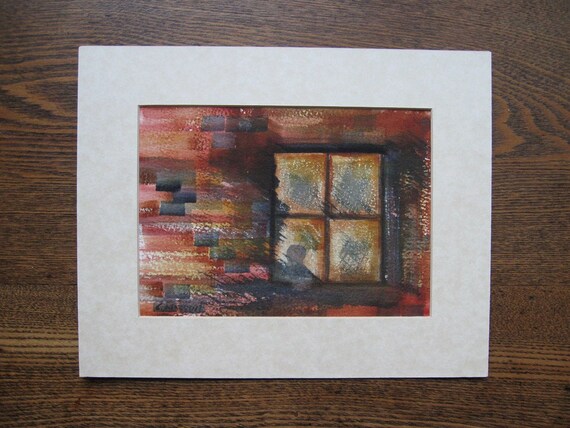 Rustic Window Window Painting Country Window Watercolor Window Face In Window Rustic Brick Window Brick Wall Art Rustic Window Ooak